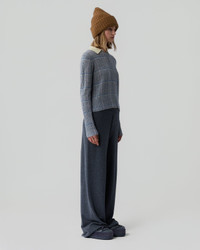 The Shrunken Check Crew is a women’s 100% cashmere sweater featuring a modern check jacquard pattern. With the same slim fit and mid-weight feel as our signature Shrunken Crew, it brings a fresh, graphic update to a timeless Guest In Residence staple. DETAILS - LIGHT-WEIGHT CABLE CHECK CREW - OUR SHRUNKEN CREW FIT - INTARSIA FOUR COLOR CHECK PATTERN WITH CABLE STITCH - HIGH RIB CUFF - SIGNATURE GIR BRANDING AT BACK NECK - 100% CASHMERE - Premium cashmere sourced from inner Mongolia, manufactured in China - CHIMENE IS 5' 9'' / 175.26 CM AND IS WEARING A SIZE SMALL.