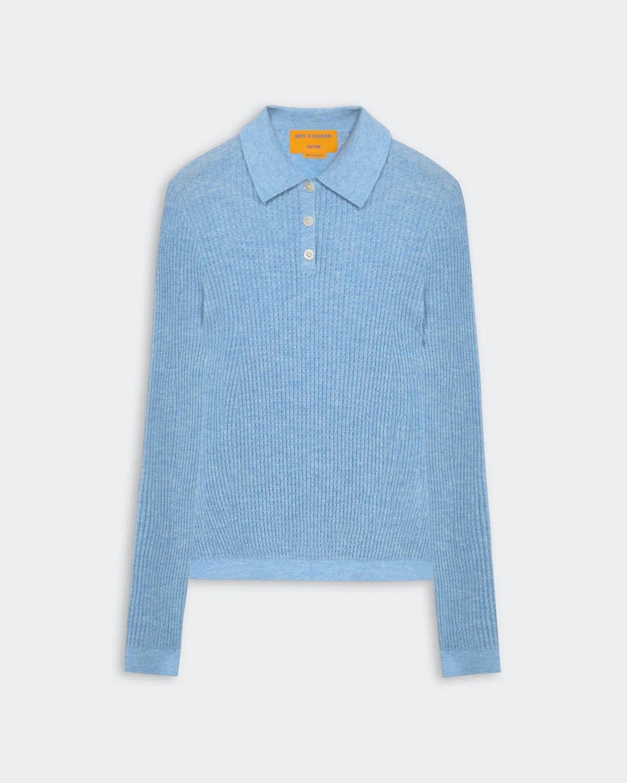 - Women's sizing, intended to fit true to size - Extra light-weight waffle knit - Semi-sheer - RIB POLO COLLAR - Three-button front placket closure - RIB HEM AND CUFF TRIM - Textured waffle stitch - 100% Cashmere - NADINE IS 5' 9" / 175 CM and is wearing a Small. - Premium cashmere sourced from inner Mongolia, manufactured in China