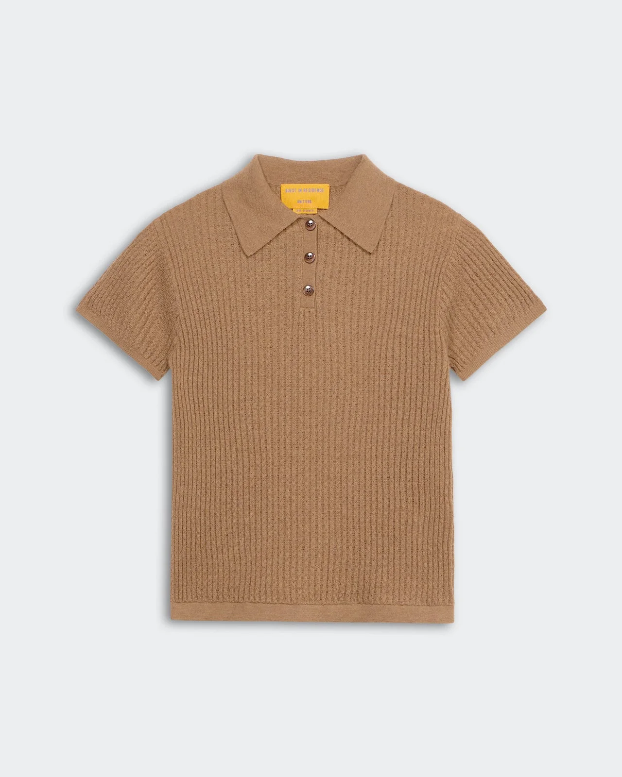 - Women's sizing, intended to fit true to size - Polo shirt collar with three-button front placket - Textured waffle stitch - Extra light-weight waffle knit - 100% Cashmere - Julia is 5' 9.5" / 177cm and is wearing a small. - Premium cashmere sourced from inner Mongolia, manufactured in China