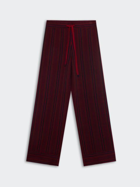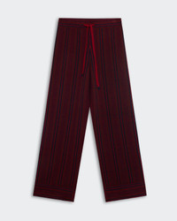 - Women’s cashmere stripe lounge pant - Mid-weight - Vertical stripe jacquard - Elasticized waistband with drawstring - Contrast horizontal stripe band at pant cuff - Signature gir branding at center back - 9 Gauge - 100% cashmere - Premium cashmere sourced from inner Mongolia, manufactured in China - NADINE IS 5' 9" / 175 CM and is wearing a Small.