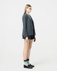 - Women's Cashmere blend blazer - soft tailored jacket - Mid-weight - Two single welt front pockets - Notch collar - Double-breasted, two-button closure - Signature gir branding at center back - 70% mercerized wool, 30% cashmere - Yana is 5' 10" / 178 CM and is wearing a small.