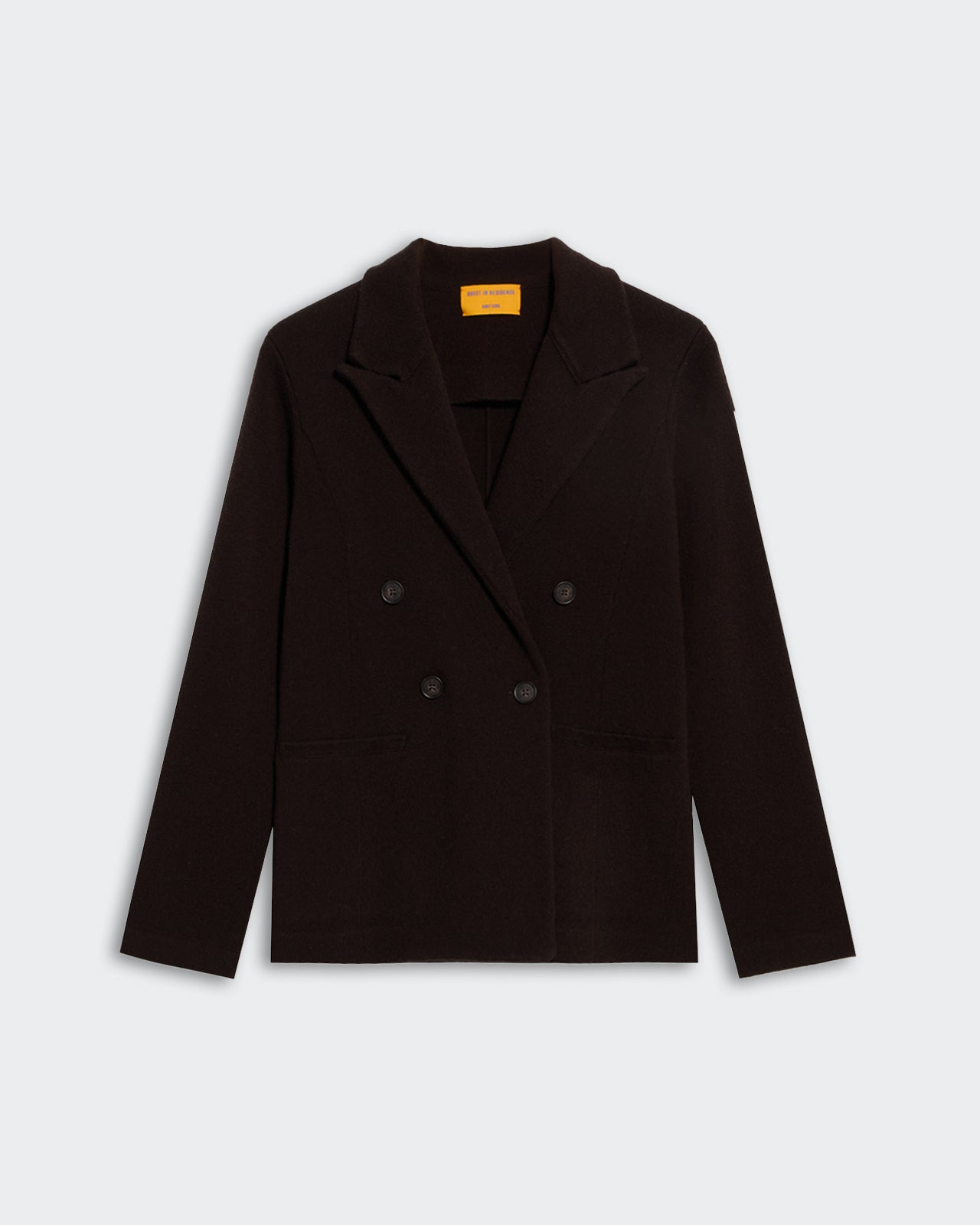 - Women's Cashmere blend blazer - soft tailored jacket - Mid-weight - Two single welt front pockets - Notch collar - Double-breasted, two-button closure - Signature gir branding at center back - 70% mercerized wool, 30% cashmere - ELLA IS 5' 11" / 180 CM and is wearing a Small.