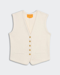 - Women's sizing, intended to fit true to size - Fitted vest - Front button closure - Contouring darts - Jersey rolled neckline and arm - Faux pocket details - Adjustable strap at center back with silver buckle - Signature GIR branding at center back - 100% Cashmere - Medium-weight knit - Julia is 5' 9.5" / 177cm and is wearing a small. - Premium cashmere sourced from inner Mongolia