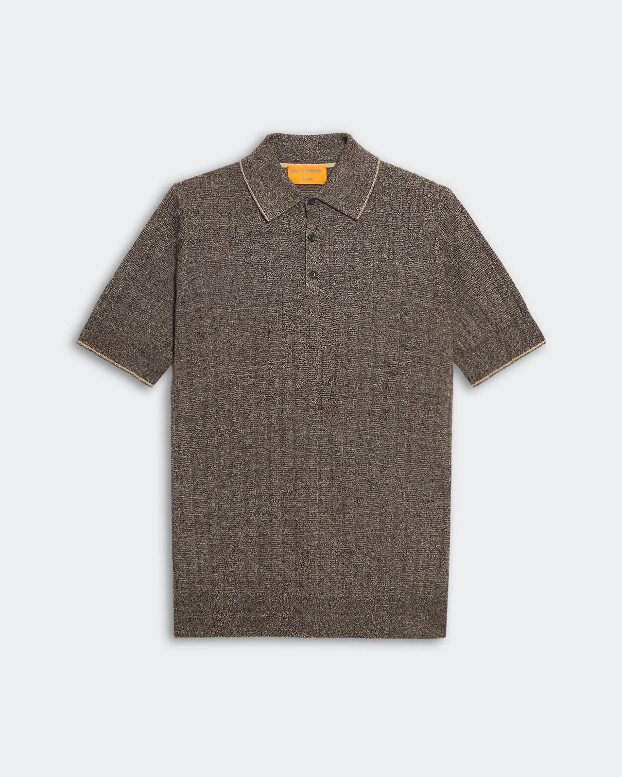 The Teddy Polo is a unisex light-weight short-sleeve polo made from a breathable linen–silk knit. Featuring a ribbed construction, and contrast color tipping, this summer polo shirt offers effortless comfort and elevated everyday style. DETAILS - UNISEX RIB SHORT SLEEVE POLO - LIGHT-WEIGHT KNIT - SHIRT COLLAR WITH STAND - CONTRAST COLOR TIPPING AT SLEEVE HEM AND COLLAR EDGE - THREE BUTTON HALF PLACKET CLOSURE - RIB SLEEVE CUFF - GIR BRANDING AT BACK NECK - 54% LINEN, 46% SILK - LEAH IS 5' 10'' / 178 CM AND IS WEARING A SIZE MEDIUM. - PAULO IS 6' 2" / 189 CM AND IS WEARING A SIZE MEDIUM.