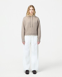 - MID-WEIGHT JERSEY HOODIE - HOOD With DRAW STRINGS - RIB CUFF + HEM - Signature GIR branding at center back neck - 100% CASHMERE - FLOOR IS 5' 10" / 178 CM and is wearing a small.