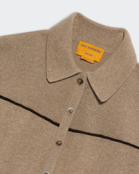 - Women’s cashmere jumpsuit - Light-weight - Front and back chest panels designed with rib stitch for structure and contrast - Western style yoke detail with vegan suede piping - Classic shirt collar with ribbed texture - Front and back patch pockets with contrast top stitch - Drawstring waistband - Snap front with horn-style buttons - Signature gir branding at center back - 14 Gauge - 100% cashmere - Premium cashmere sourced from inner Mongolia, manufactured in China - FLOOR IS 5' 10" / 178 CM and is wearing a size small.