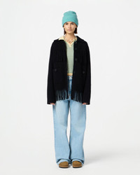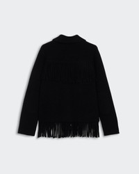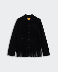 - Cashmere blend fringe jacket - Heavy-weight - Wear it solo or layer it over other pieces - Knitted western style fringe at yoke - Knitted fringe at hem - Two front patch pockets with button closure and topstitching - Elbow patch with topstitching - Signature gir branding at back neck - 5 Gauge - 70% mercerized wool, 30% cashmere - Julia is 5' 9.5" / 177cm and is wearing a small.