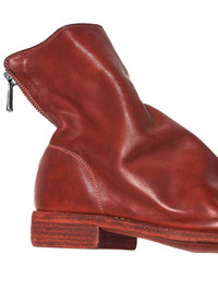 Guidi vegetable-tanned object-dyed full grain leather boot in red, heel counter zip closure, goodyear welting, stacked heel, tonal stitching. Made in Italy. Composition - 100% Horse Leather European sizing.
