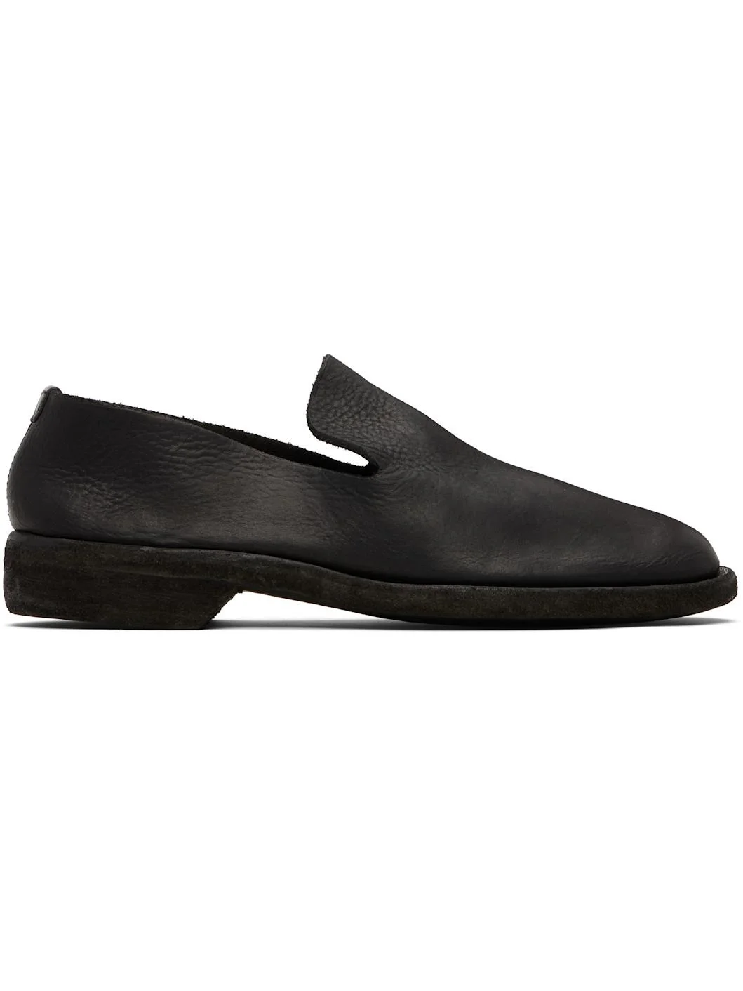 Piece-dyed grained calfskin loafers. · Logo embossed at footbed · Topstitching at Goodyear welt · Stacked leather heel · Leather sole Supplier color: Black Upper: calfskin. Sole: leather. Made in Italy 251703F121000