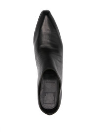 65mm leather slippers Highlights - Black - Calf leather - Pointed toe - Open back - Branded leather insole - Slip-on style - Mid block heel Made in Italy Composition Sole: Calf Leather 100% Outer: Calf Leather 100% Lining: Calf Leather 100% SIZE & FIT Measurement HEEL 2.55 in(6.5 cm) Sole height 0.39 in(1 cm)