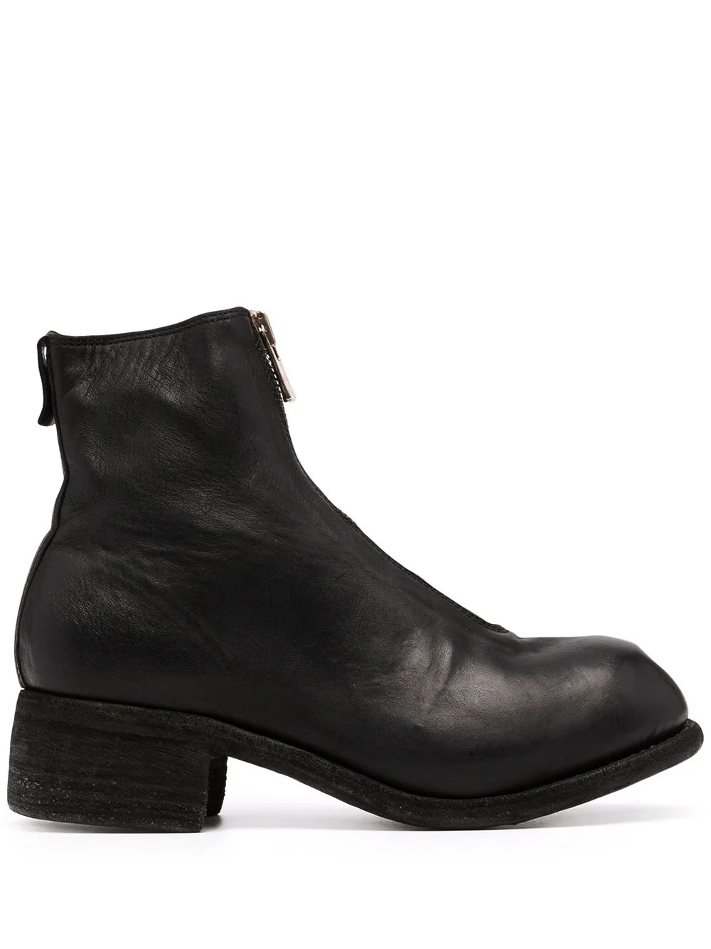 zip-up ankle boots black leather round toe front zip fastening ankle-length branded heel counter low block heel Made in Italy Composition Body: Leather 100% SIZE & FIT Measurement HEEL 1.96 in(5 cm) CIRCUMFERENCE 8.26 in(21 cm) Sole height 0.78 in(2 cm) HEIGHT 5.31 in(13.5 cm)