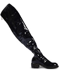 laminated knee-high leather boots