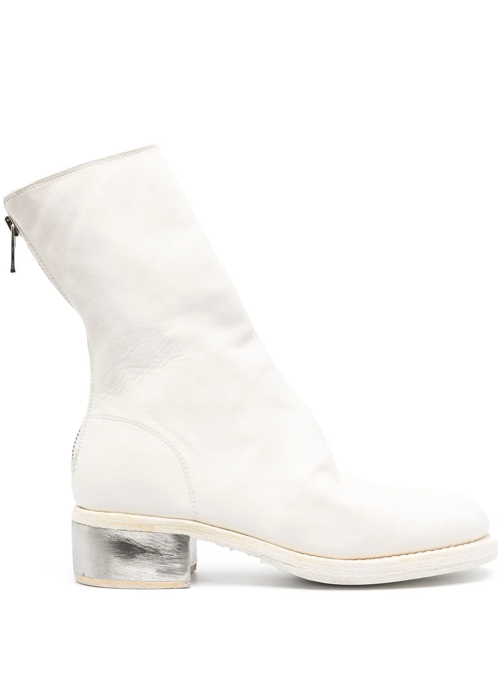 zip-fastening leather boots off-white calf leather ankle-length rear zip fastening round toe 43mm block heel Made in Italy Composition Lining: Calf Leather 100% Outer: Calf Leather 100% Sole: Calf Leather 100% SIZE & FIT Measurement CIRCUMFERENCE 8.66 in(22 cm) HEEL 1.69 in(4.3 cm) HEIGHT 7.87 in(20 cm) Sole height 0.59 in(1.5 cm)