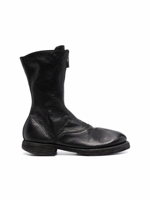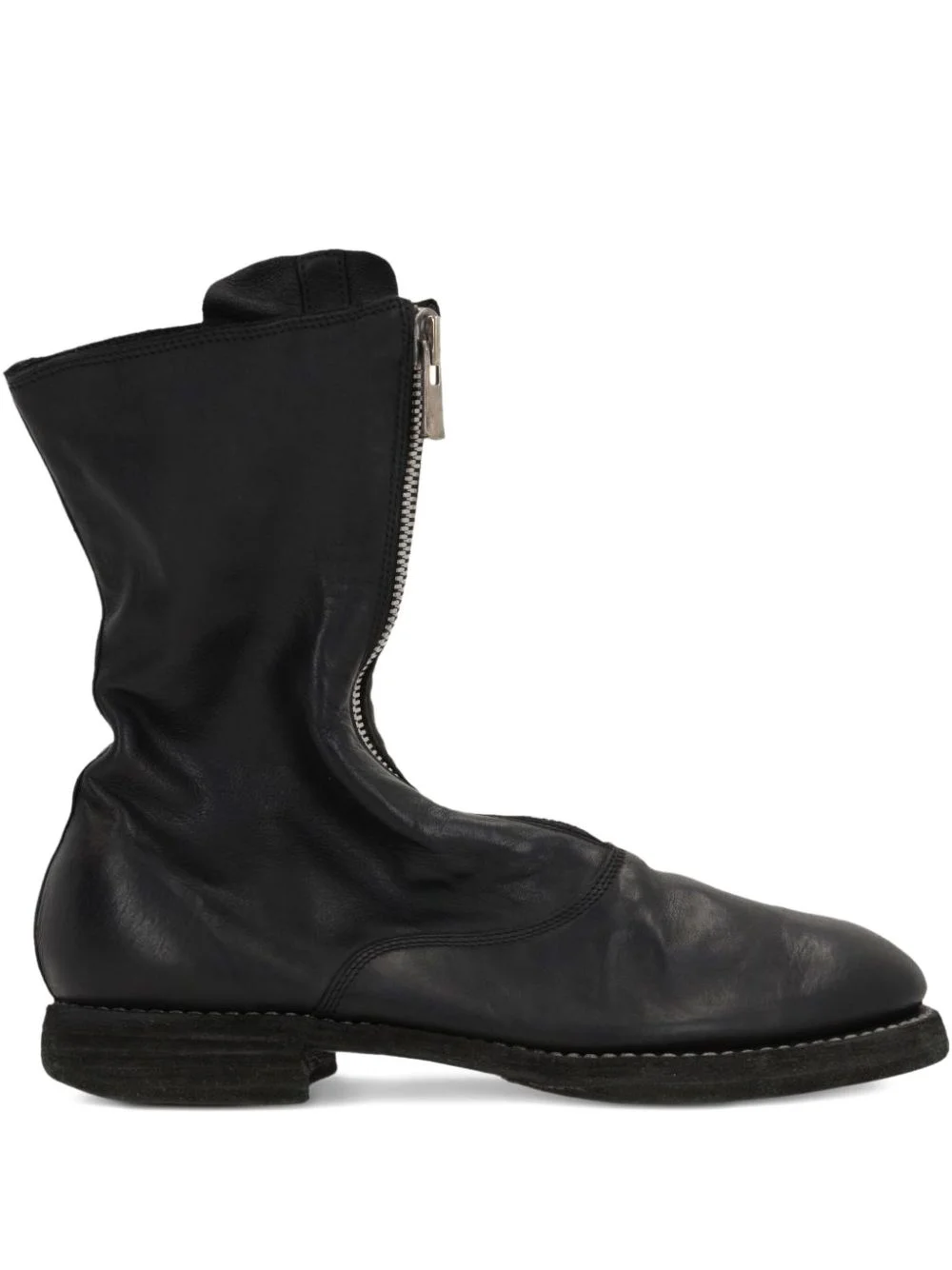 zip-front round-toe boots Highlights - Black - Grained leather - Front zip closure - Round toe - Stitch detailing Made in Italy Composition Outer: Horse Leather 100% Lining: Leather 100% Sole: Horse Leather 80%, Calf Leather 20% SIZE & FIT Measurement HEEL 0.98 in(2.5 cm)
