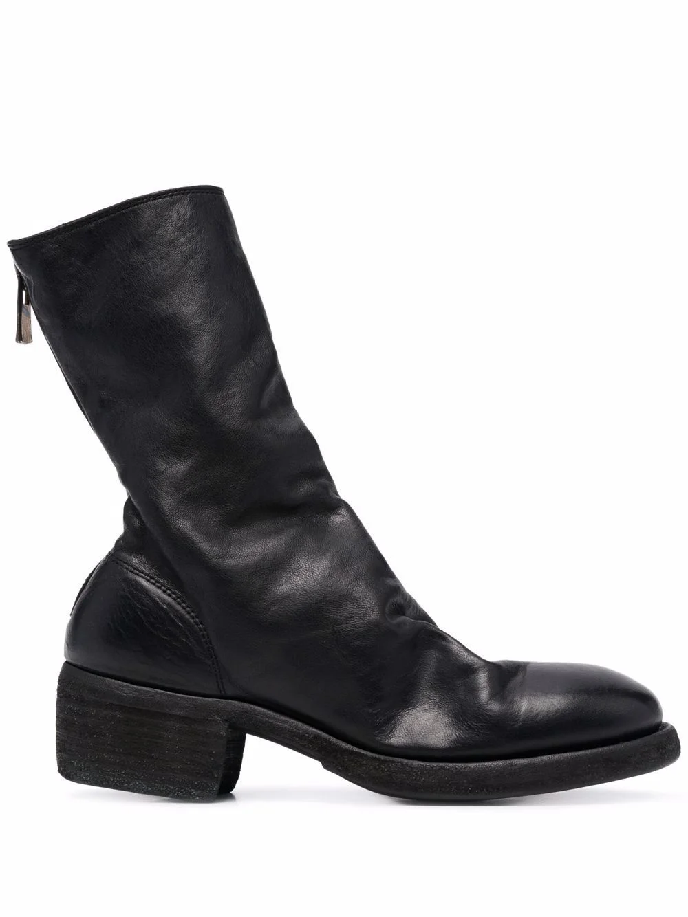 788z Back Zip Mid boots black leather round toe rear zip fastening low block heel ankle-length Imported Composition Outer: Leather 100% Sole: Leather 100% Lining: Leather 100% SIZE & FIT Measurement CIRCUMFERENCE 8.66 in(22 cm) HEEL 1.57 in(4 cm) HEIGHT 7.48 in(19 cm) Sole height 0.59 in(1.5 cm)