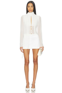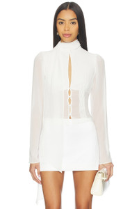 - Self: 100% polyester Lining: 95% polyester 5% spandex - Made in China - Hand wash cold - Front button closure - Lightweight georgette fabric - Attached scarf - Revolve Style No. DGUI-WS233 - Manufacturer Style No. H25126W096