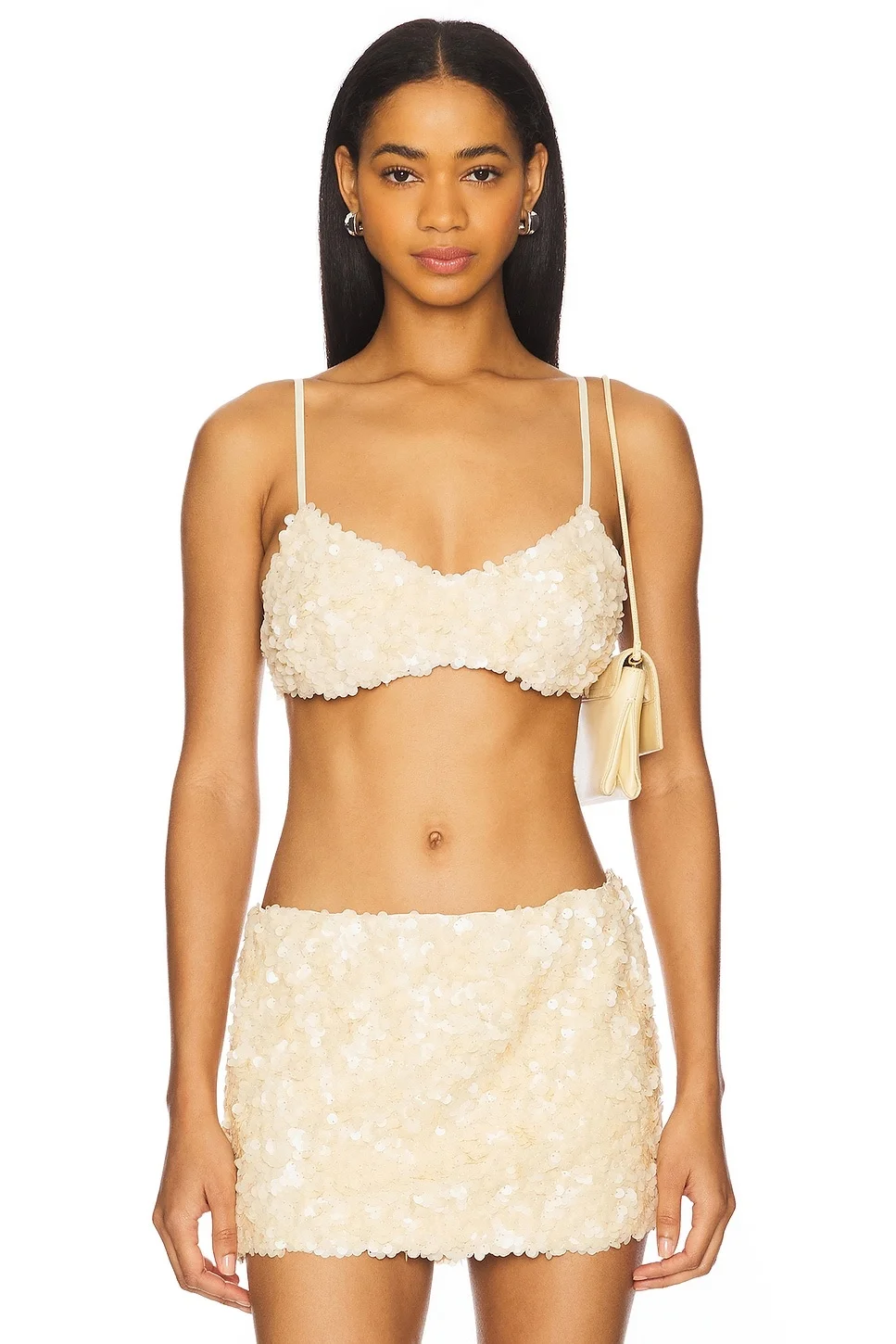 - Self & Lining: 100% polyester - Hand wash - Unpadded cups - Back hook and bar closure - Adjustable tie shoulder straps - Lightweight sequin fabric - Item not sold as a set - Revolve Style No. DGUI-WS189 - Manufacturer Style No. S25130W140