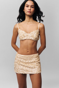 - Introducing the Ari Sequin Skirt - perfect for any event. Complete the look by pairing it with the Ari Gathered Sequin Top. - Fabrication: 95% Polyester, 5% Wool - Thalita is wearing a size S and is 5'9" with a 32" bust, 35" hips, and 23" waist