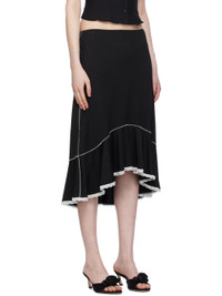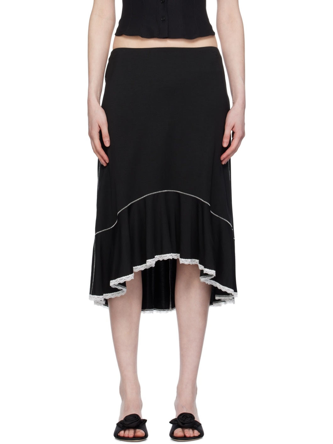 Stretch modal jersey skirt. · Low-rise · Elasticized waistband · Lace trim at ruffled hem · Partially lined · Contrast stitching in white Supplier color: Black