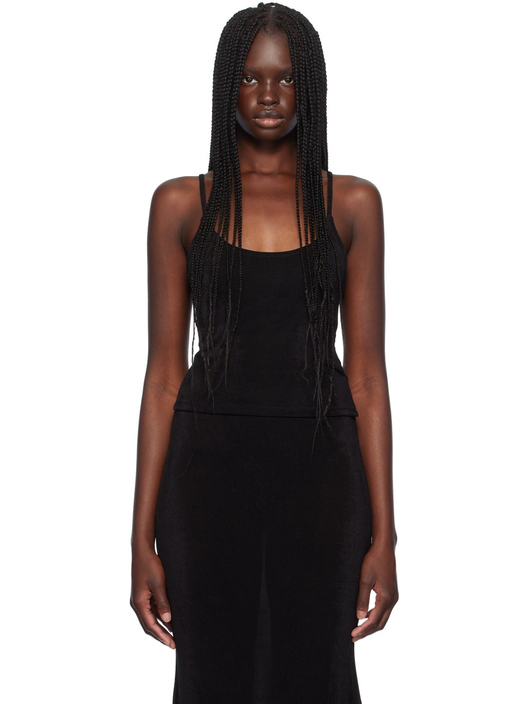 Stretch polyester ribbed tricot camisole. · Scoop neck · Adjustable spaghetti straps · Integrated mesh bra Supplier color: Black