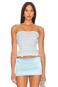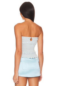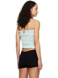 Knit cotton tube top. Ruffle detailing throughout. · Strapless construction · Straight neck · Self-tie fastening at front · Button keyhole at back Supplier color: Powder