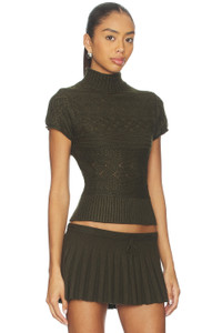 - 45% viscose, 45% nylon, 5% wool, 5% angora wool - Made in China - Dry clean only - Pull-on styling - Midweight knit fabric - Ribbed hem - Mockneck styling - Revolve Style No. DGUI-WS239 - Manufacturer Style No. H25609S020
