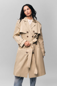 - Ideal for layering - our double-breasted trench coat is perfect for those in-between seasons. With a classic fit, a removable belt, and plaid lining for a charming touch. - Composition: 100% Cotton - Thalita is wearing a size S and is 5'9" with a 32" bust, 35" hips, and 23" waist