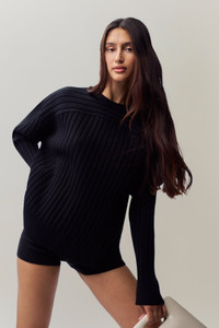 - The Cleon Rib Knit Pullover is crafted from soft, high-quality rib knit. This pullover offers a cozy feel with a sleek, streamlined look. Its versatile design makes it ideal for layering or wearing on its own. - Fabrication: Plush Knit; 50% Rayon 22% Nylon 28% Poly - Sonali is wearing a size S and is 5'10" with a 31" bust, 35" hips, and 23" waist