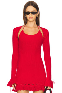 - 52% acrylic 42% cotton 6% lycra - Hand wash - Crochet knit fabric with open front and bell cuffs - Item not sold as a set - Revolve Style No. DGUI-WK52 - Manufacturer Style No. P25705S019