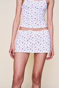 - The Dani Terry Mini Skort is made from plush terry cloth with built-in shorts underneath for easy wear. Features a low-rise fit, elastic waistband, and adjustable drawstring. Whether paired with the matching tank or thrown on after the beach, it’s made for lounging, layering, and everything in between. - Composition: 85% Cotton, 15% Polyester - Beauty is wearing a size XS and is 5'10" with a 31" bust, 34.5" hips, and 24" waist