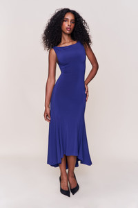 - The best pick for an understated and romantic dress: the Daye Midi Dress. Stretch jersey construction means it's soft and comfortable, designed with power mesh lining for a smoothing effect. A hi-lo flutter hem allows plenty of movement, which makes this the perfect dress for a long day and night. - Bateau neckline - Pullover style - Composition: 92% Polyester, 8% Spandex - Eileen is wearing a size S and is 5'9" with a 32" bust, 35" hips, and 25.5" waist - Note: This style tends to run small. If you're between sizes, consider sizing up.