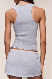 - This is a low-rise fleece skirt with an elastic waistband and built-in shorts. - Composition: 100% Cotton - Rocio is wearing a size S and is 5'10" with a 29" bust, 35" hips, and 23.5" waist
