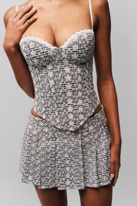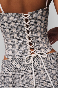 - Crafted from a charming gingham fabric with delicate floral details and a charming lace trim, our Genevieve Bustier pairs perfectly with the Floriane Gingham Skort for a flawless ensemble. - Composition: 100% Polyester - Birta is wearing a size XS and is 5'9" with a 33" bust, 38" hips, and 23" waist