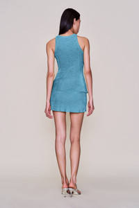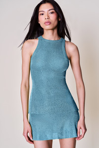 - Make a statement with our Jewels Skirt, crafted from shimmering slinky knit for a touch of glamour. This mini-length skirt features a flattering fit that accentuates your silhouette, perfect for both day and night looks. The sparkly fabric catches the light beautifully, ensuring you stand out in any setting. - Composition: 72% Viscose 28% Metallic - Beauty is wearing a size XS and is 5'10" with a 31" bust, 34.5" hips, and 24" waist