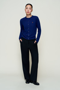 - The June Relaxed Wool Cardigan is crafted from soft wool-blend in a slightly cropped silhouette, finished with a button front and an embroidered teddy bear detail. Designed with a slightly relaxed fit, it offers a cozy yet polished take on everyday knitwear. - Composition: 45% Nylon, 45% Viscose, 5% Angora Wool, 5% Wool - Shannon is wearing a size S and is 5'9" with a 32" bust, 34.5" hips, and 24" waist