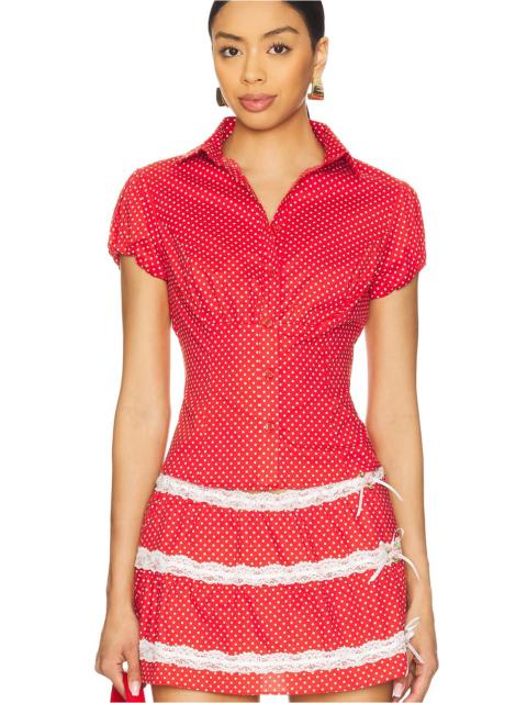 - 97% polyester 3% spandex - Hand wash - Front button closure - Elastic stretch at cuffs - Satin fabric - Revolve Style No. DGUI-WS190 - Manufacturer Style No. S25154W022