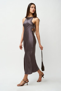 - Update your wardrobe with our Lina Dress. It's effortlessly simplistic with an open back and adjustable tie back and waist. - Composition: 100% Viscose - Sonali is wearing a size XS and is 5'10" with a 31" bust, 35" hips, and 23" waist
