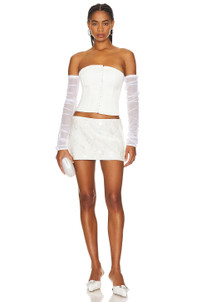 - Self: 90% polyester 10% elastane Lining: 95% polyester 5% elastane - Made in China - Spot clean only - Fully lined - Hidden side zipper closure - Sequin and paillette embellishments throughout - Skirt measures approx 11" in length - Revolve Style No. DGUI-WQ43 - Manufacturer Style No. H23317W020