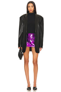- Self: 90% polyester 10% elastane Lining: 95% polyester 5% elastane - Made in China - Spot clean only - Fully lined - Hidden side zipper closure - Sequin and paillette embellishments throughout - Skirt measures approx 10.5" in length - Revolve Style No. DGUI-WQ57 - Manufacturer Style No. R24313