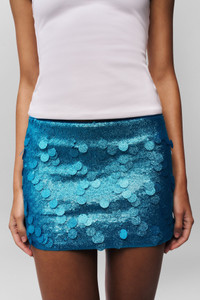 Catch the light. Have you seen our Low-Rise Paillette Skirt? It glitters from a mile away with sequin and paillette embellishing that fully covers the fitted shape. We like it best worn with a simple top so this DG staple can dazzle on its own. - Concealed side zip - Allover embellishing - Satin lining - 90% Polyester, 10% Spandex - Model wears a size small - Model measurements: Height 5’8”, Bust 30”, Waist 25”, Hips 35”
