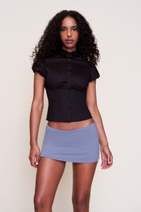 - We’re proud to introduce a favorite member of our team, the Micro-Mini Stretch Skirt. It's stretchy with a super-short fit and a dip to shape the front. Since we’re always thinking ahead, there’s a built-in panty lining too, providing the perfect comfort for wearing a mini. - Elasticized waistband - Pull-on style - Built-in panty lining - Composition: 80% Polyester, 20% Spandex - Eileen is wearing a size S and is 5'9" with a 32" bust, 35" hips, and 25.5" waist