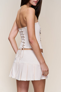 - Discover our Pleated Micro‑Mini Skirt. It channels preppy cool with a wide button waist and a pleated hem for playful movement to the mini fit. Pair it with a blazer for a spicy twist on tailored suiting. - Composition: 67.5% Polyester, 18.9% Rayon, 5.2% Spandex, 4.9% Lyocell, 3.5% Wool - Alessandra is wearing a size XS and is 5'9" with a 32.5" bust, 36.5" hips, and 25" waist