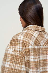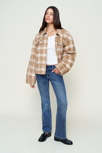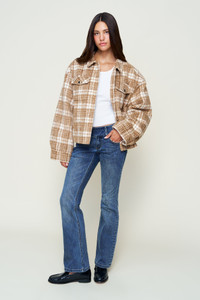 - An oversized plaid jacket in a brushed wool-blend, finished with quilted padding for added volume. Silver hardware and flap pockets complete the look — an effortless layer for every day. - Composition: 100% Polyester - Kayla is wearing a size S and is 5'8" with a 32" bust, 35" hips, and 24.5" waist