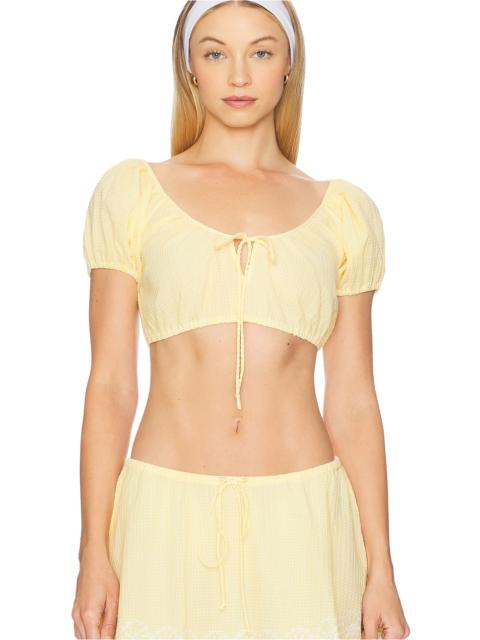 - 65% polyester 35% cotton - Hand wash - Pull-on styling - Front tie detailing - Cropped fit - Lightweight seersucker fabric - Item not sold as a set - Revolve Style No. DGUI-WS209 - Manufacturer Style No. P25102W153