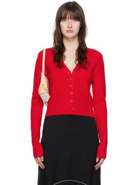Knit viscose- and nylon-blend cardigan. · Y-neck · Button closure · Rib knit hem and cuffs Supplier color: Poppy