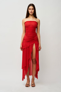 - Effortlessly stunning, the Lyla Twist Dress offers a strapless silhouette with delicate mesh fabric and a unique twist detail. Perfect for any occasion, this midi dress will make you feel confident and chic. - Composition: 90% Nylon, 10% Spandex - Sonali is wearing a size XS and is 5'10" with a 31" bust, 35" hips, and 23" waist