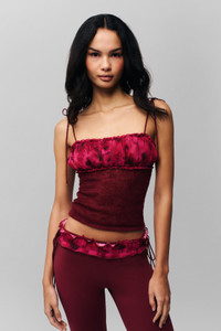 - We made the perfect pants: lightweight stretch athletic-style jersey that’s super soft and comfortable in a cutie low-rise silhouette with a ruffled chiffon waist. They’re pretty great worn with anything, but we especially love them with the Ruched Chiffon Knit Tank. - Elasticized waistband - Decorative side ties - Composition: 75% Nylon, 25% Spandex - Thalita is wearing a size S and is 5'9" with a 32" bust, 35" hips, and 23" waist