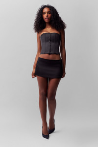 Have you met our Satin Corset? A true closet hero, it features everything we love about a classic corset: boned structure, boudoir-style hook-and-eye closures and a lattice back. More than an occasion top, you can wear it over and under your favorite pieces. - Strapless neckline - Front hook-and-eye closures - Lattice back closure - Boned bodice - 100% Polyester - Model wears a size small - Model measurements: Height 5’9”, Bust 32”, Waist 25.5”, Hips 35”