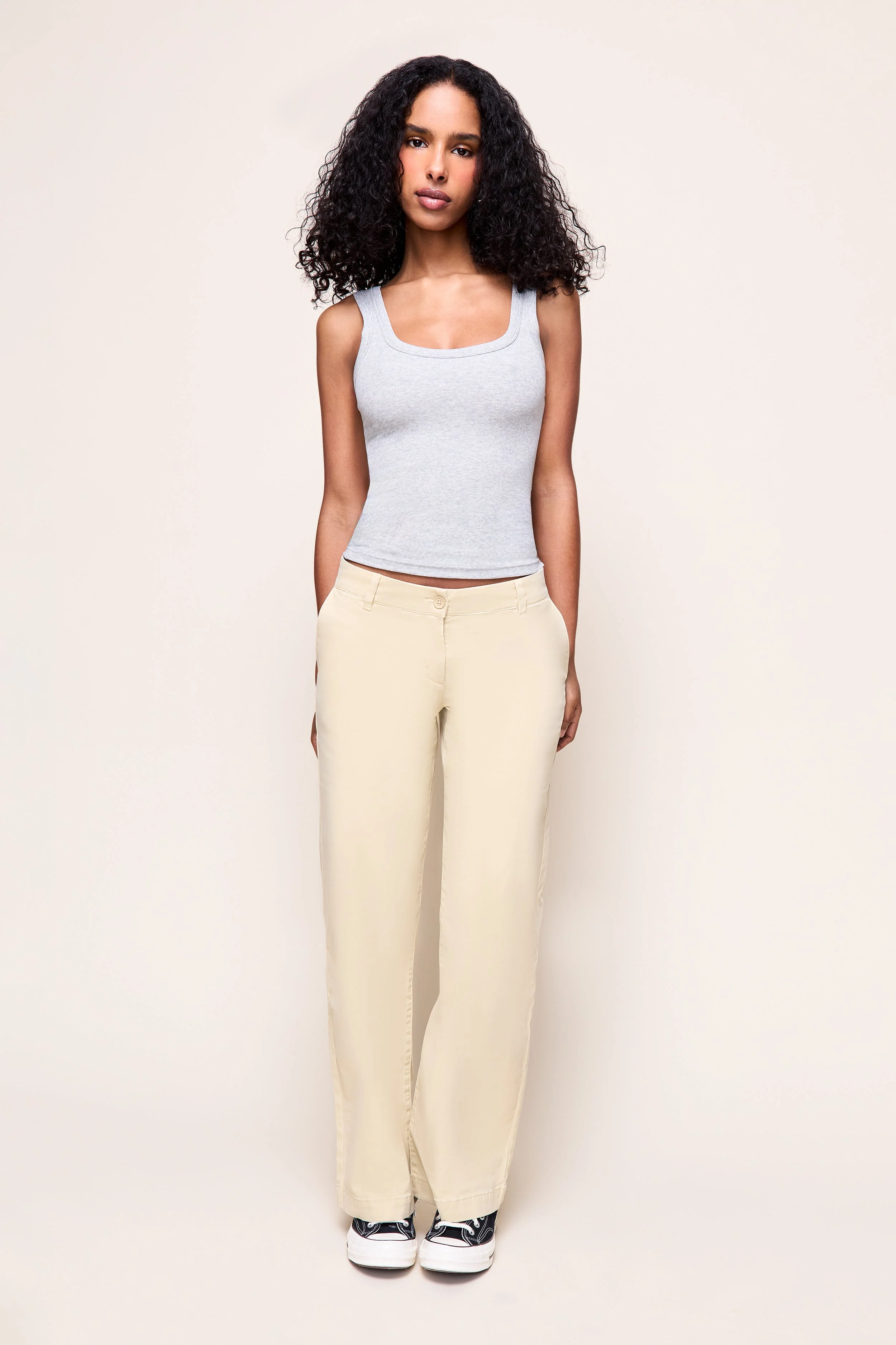 - The Siene Wide Leg Pant features a clean mid-rise waist and fluid wide-leg silhouette for an effortless, lengthening fit. Crafted from a smooth structured fabric with classic details, it delivers all-day comfort with a polished finish. - Composition: 98% Cotton, 2% Spandex - Eileen is wearing a size S and is 5'9" with a 32" bust, 35" hips, and 25.5" waist