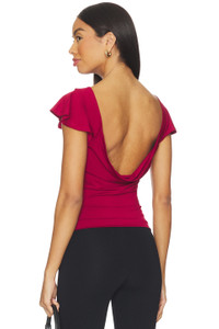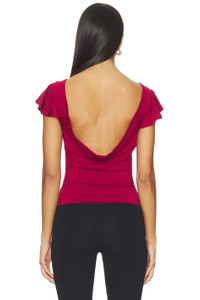 - Shell: 92% Polyester 8% Spandex - Hand wash cold - Pull-on styling - Ruffle sleeves - Draped back design - Revolve Style No. DGUI-WS229 - Manufacturer Style No. F25143K012